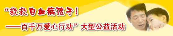 中国红十字基金会倡导发起的“救救白血病孩子!——百千万爱心行动”大型公益活动,旨在通过发动网友和社会力量捐赠建立“小天使网友基金”,救助贫困的白血病儿童,点燃祖国花朵的生命希望。